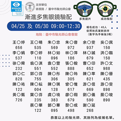 我們誠邀您參加我們即將舉辦的專業進階培訓 — 「多焦鏡片驗配課程」。這是一個專為提高您在多焦鏡片驗配方面技能而設計的機會,您將學習最先進的驗配技術、理解多焦鏡片的科學原理,並獲得實際操作經驗。